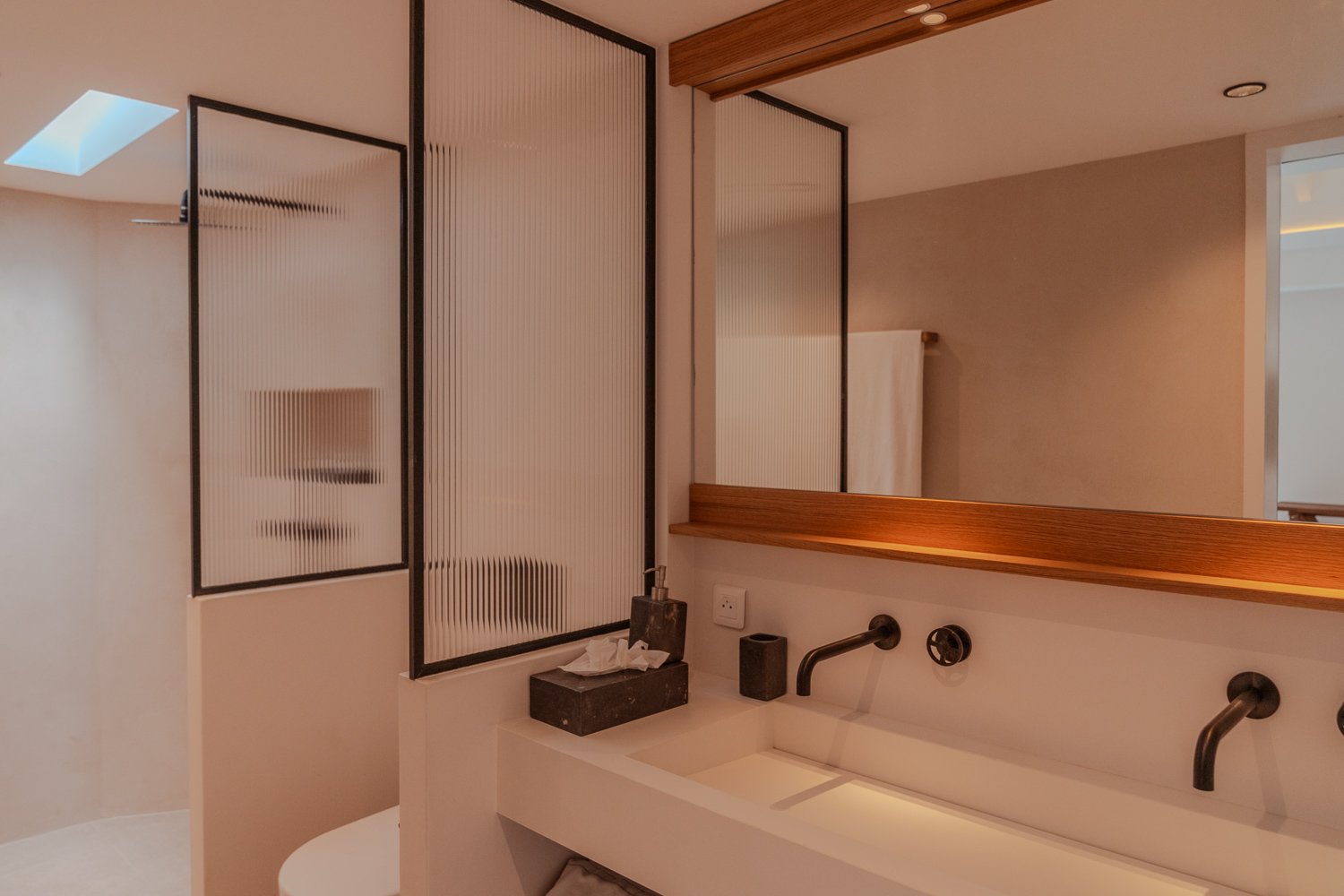 King size bed (180 cm), air-conditioning, sea view, adjacent bathroom with shower and toilet, Smart TV, Dish network, safe